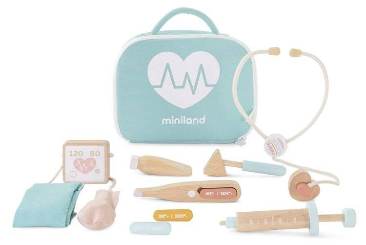 - Drewniany zestaw małego lekarza sprawi, że zabawa z lalkami Miniland będzie jeszcze bardziej wciągająca. To świetny sposób na rozwijanie umiejętności społecznych już od najmłodszych lat.
