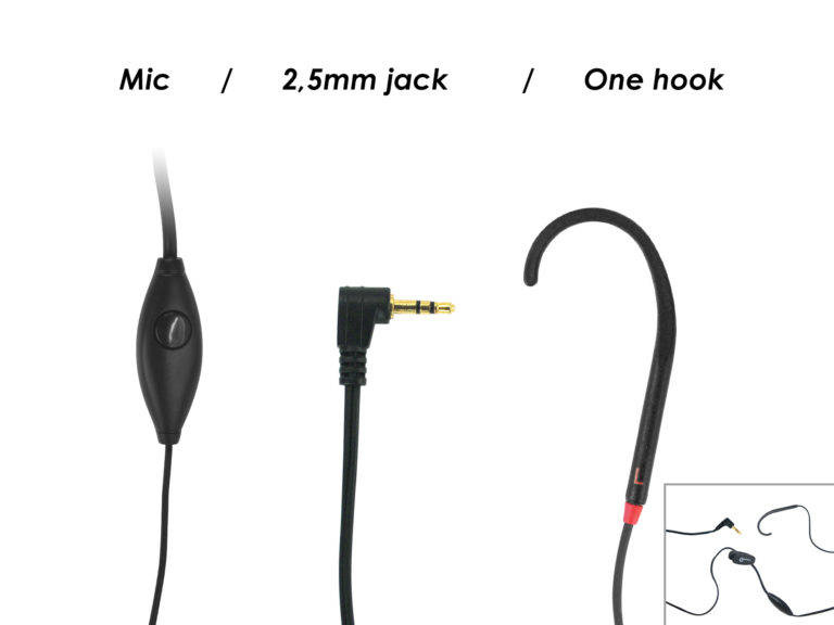 - Pojedyncza pętla indukcyjna / zaczep na ucho z mikrofonem do używania z telefonem jako zestaw głośnomówiący