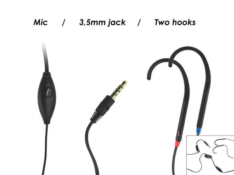 - Podwójne zaczepy na ucho do GSM z gniazdem 3,5 mm