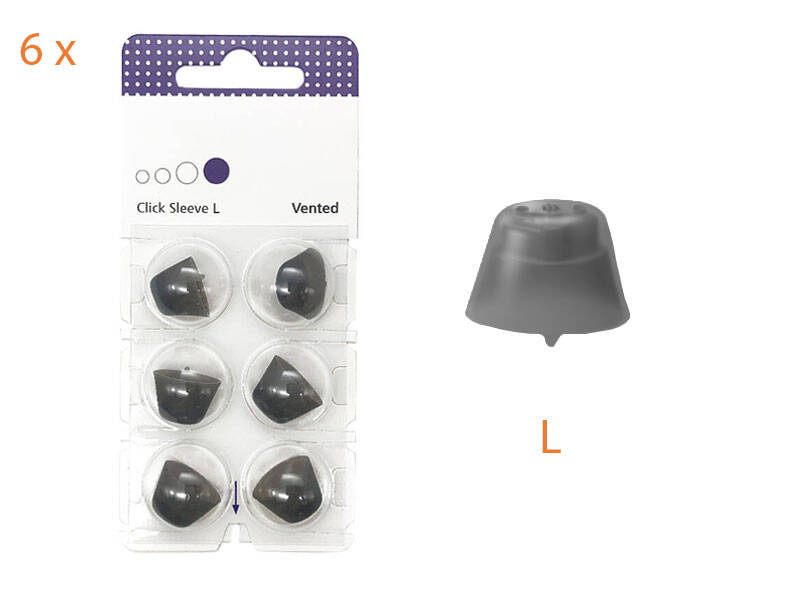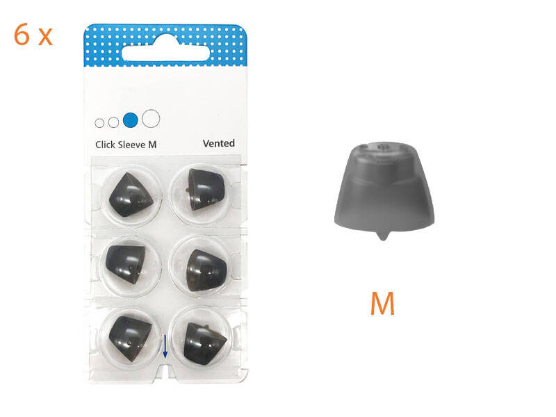 • Nasadki Click Sleeve z wentylacją to małe, uniwersalne, gumowe wkładki uszne przeznaczone do aparatów słuchowych Signia.