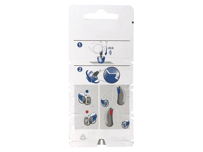 Miękkie, wentylowane wymienne silikonowe kopułki Click Sleeve dopasowują się do kanału słuchowego i zapewniają wysoki poziom wygody i utrzymania w uchu. Prawidłowe założenie wywołuje charakterystyczny dźwięk "klik". Praktyczne oznaczenie stron pomaga nowym użytkownikom aparatów słuchowych podczas zakładania. Pomysłowe zabezpieczenie przed obracaniem się zapewnia wyjątkowy komfort noszenia.