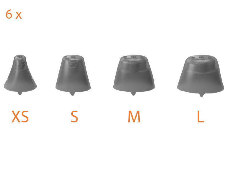 Nasadki / kopułki dostępne są w różnych rozmiarach, dzięki czemu pasują niemal do każdego kanału słuchowego: