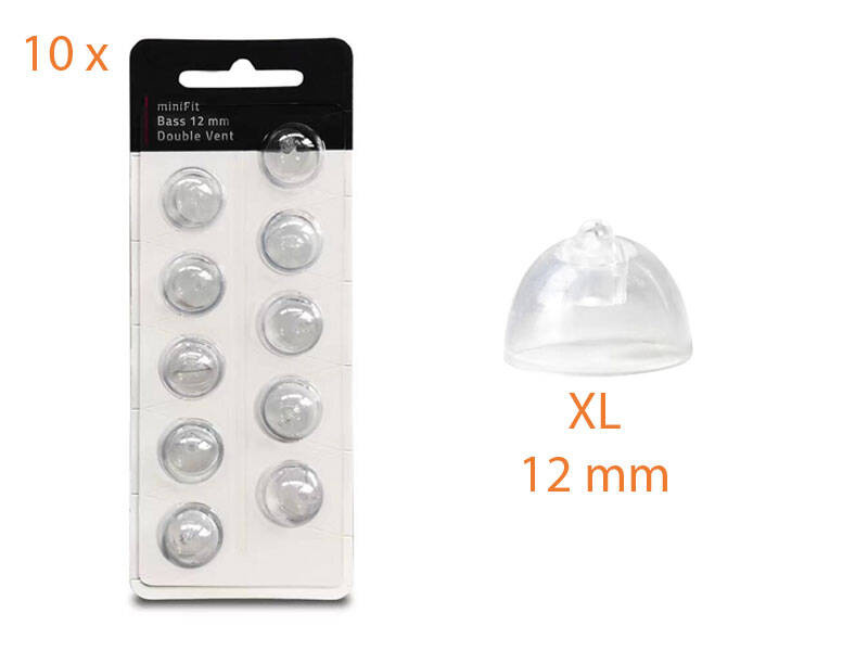 Nasadki / kopułki miniFit Bass z wentylacją do aparatów słuchowych Oticon (miniFit Bass Double Vent Domes) - 10 szt.