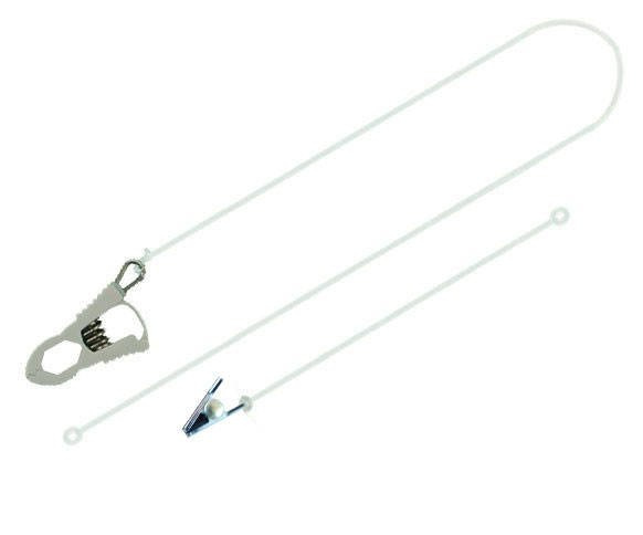 W zestawie znajdują się dwie zawieszki MED-EL do procesora mowy RONDO 2. Każda zawieszka jest inaczej mocowana: jedna do włosów za pomocą spinki, drugaklipsem do ubrania. Zapobiegają zgubieniu lub uszkodzeniu urządzenia. Obie zawieszki posiadają rozciągliwą żyłkę silikonową od długości: